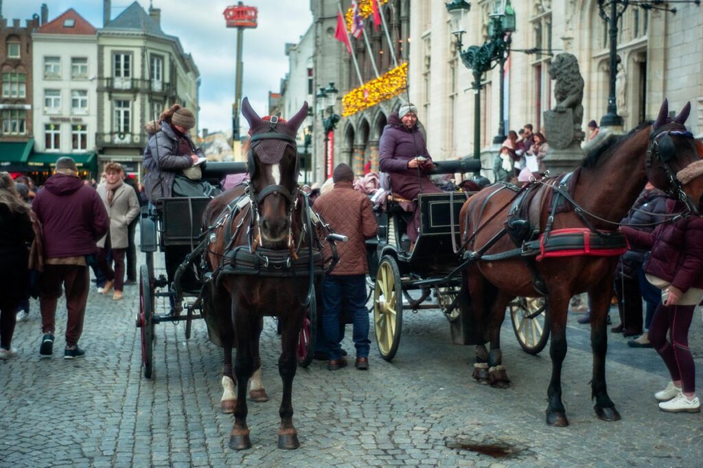 After a short 5-minute walk through these charming alleys, you’ll arrive at Bruges’ old town. Walk a little further, and you’ll reach the main Christmas market at Market Square. The town is compact, so exploring it won’t take long, making it perfect for a day trip.