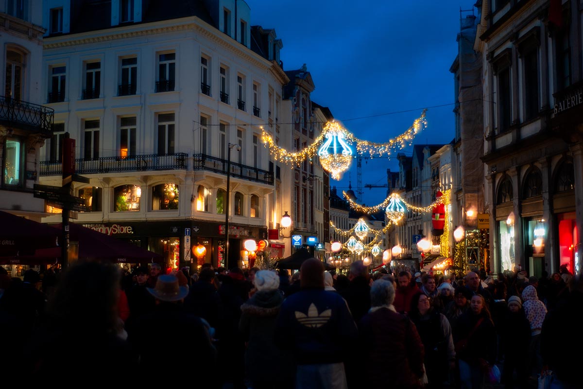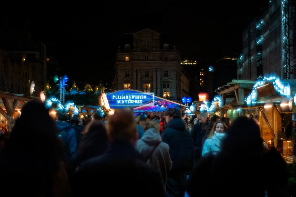 • Boulevard Anspach – The long connecting boulevard between market zones. Dense rows of stalls on both sides make it feel like one continuous Christmas street.