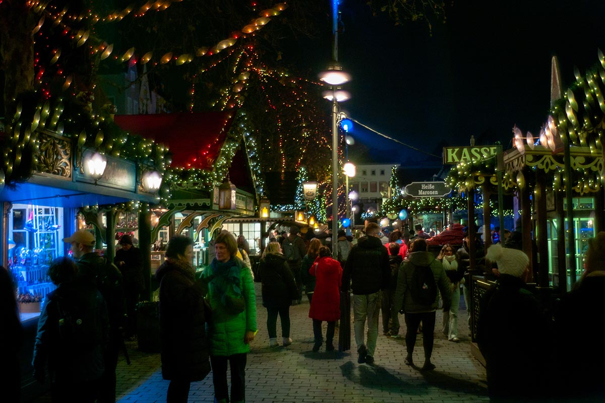Wiesbaden’s Christmas markets have a refined and elegant charm. The flower-themed decorations give the market a unique and sophisticated look, making it feel more polished than the rustic or crowded markets in larger cities.