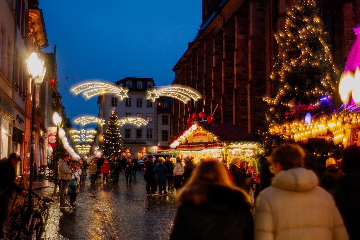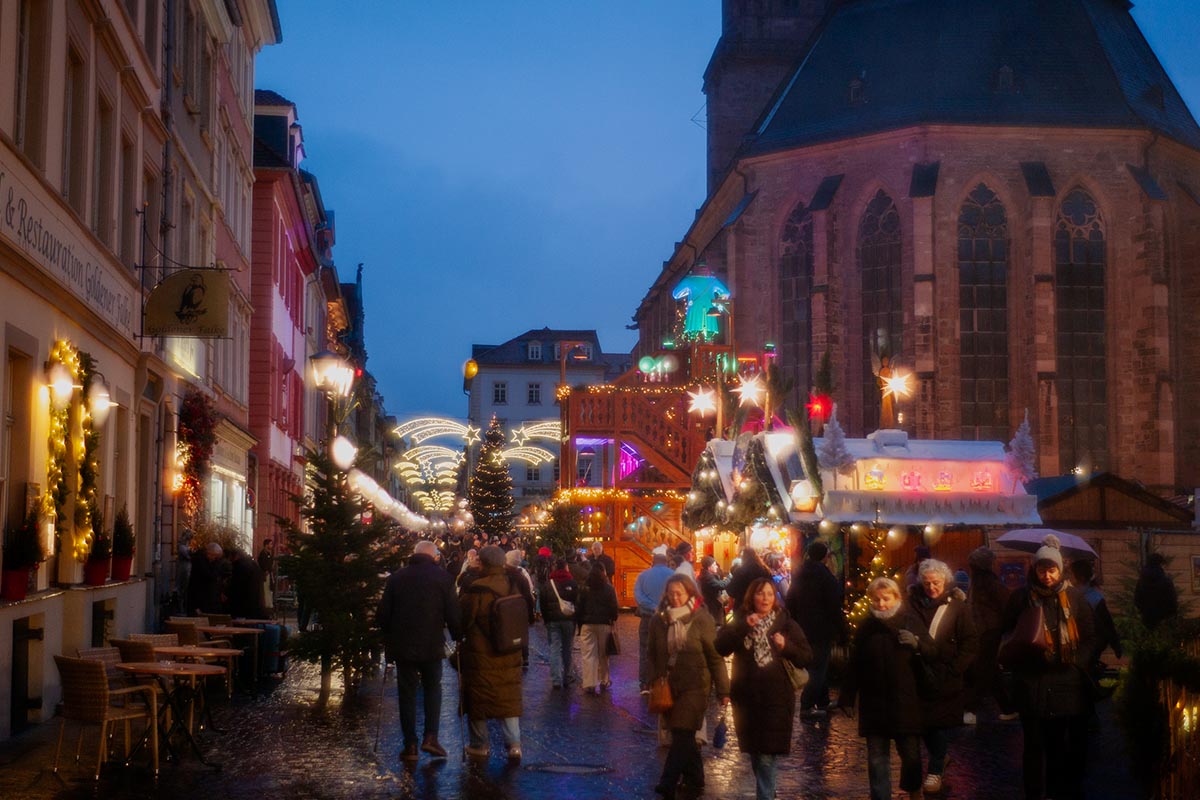 5. Kornmarkt Christmas Market – A smaller and quieter market with a romantic setting and beautiful views up toward Heidelberg Castle, especially charming in the evening.