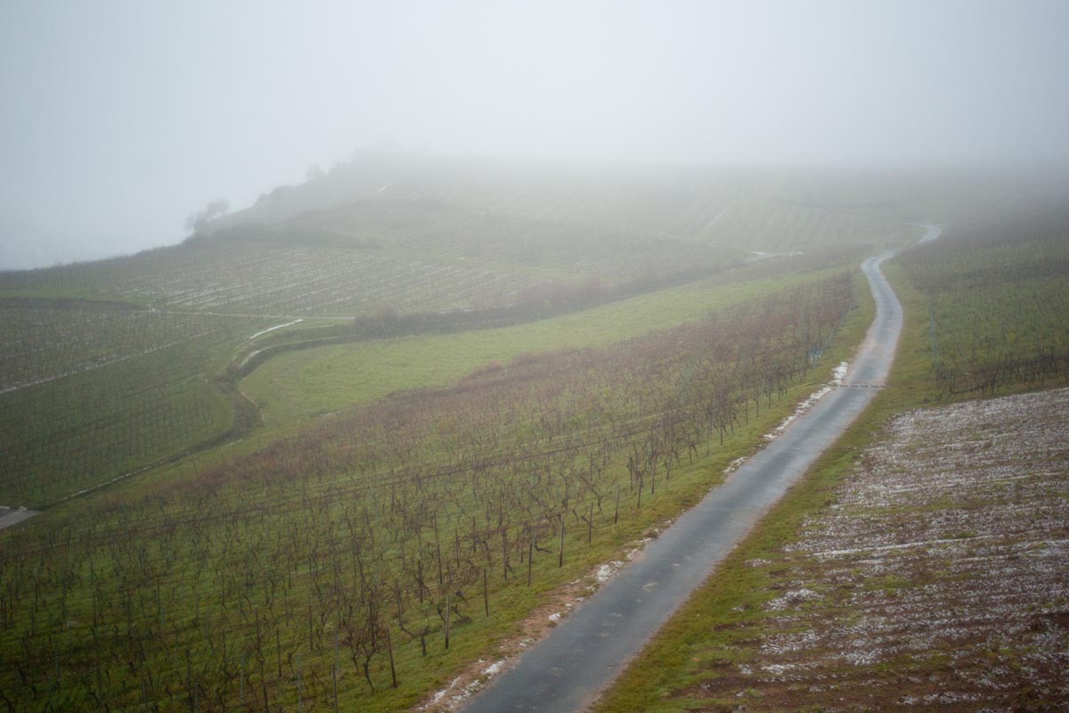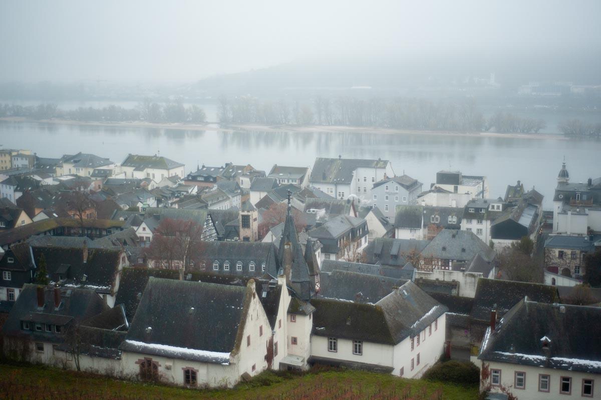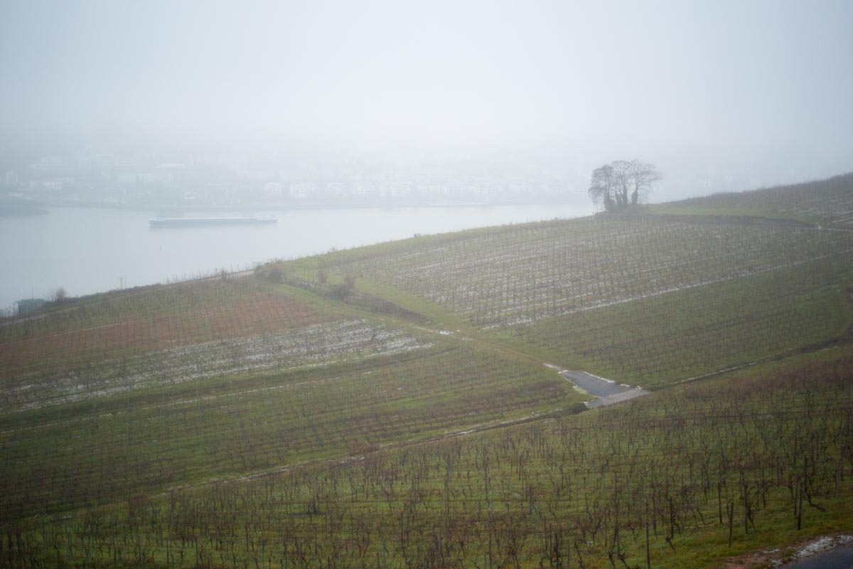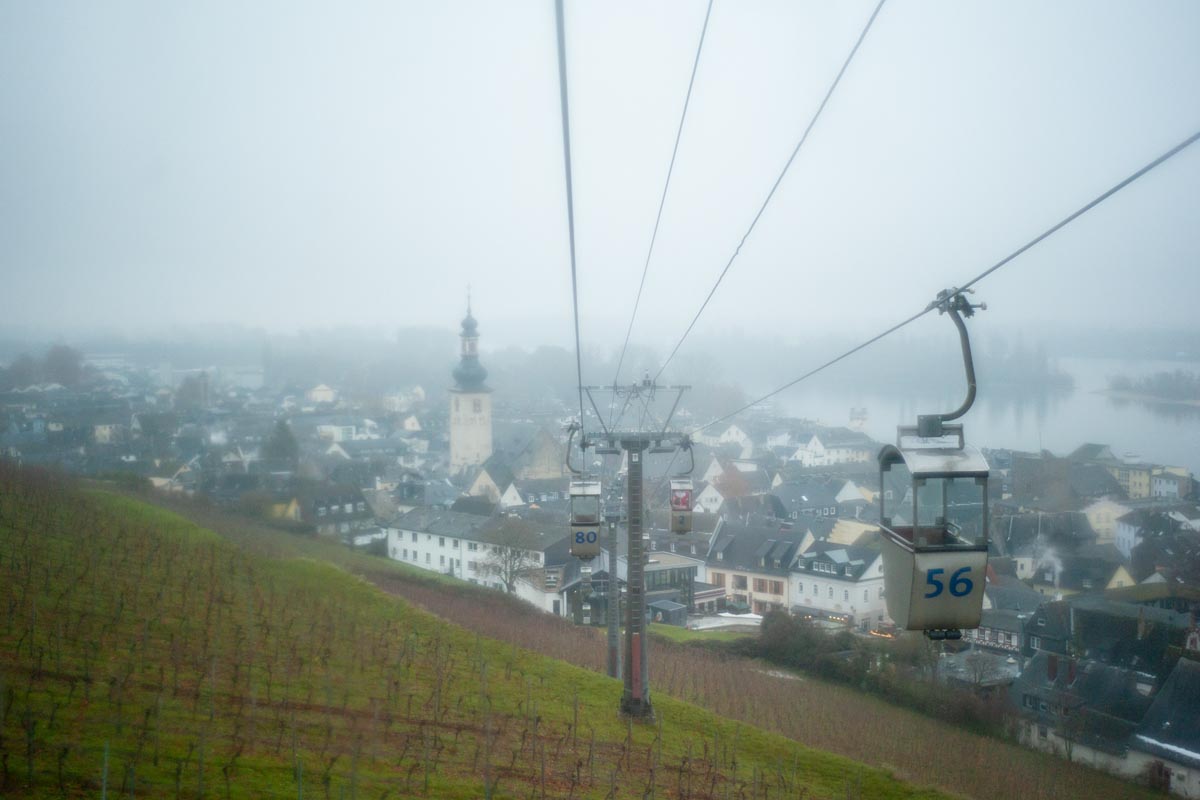 As a bonus, take the Seilbahn Rüdesheim cable car up to the Niederwald Monument for a leisurely walk or an easy hike along the hilltops above Rüdesheim. The day I visited was foggy and cold, but the misty atmosphere was so beautiful that the memory still lingers. On a sunny day, the view is spectacular, with rolling vineyards along the hills and the Rhine River stretching out in the background. This experience is definitely a must-do when visiting Rüdesheim.