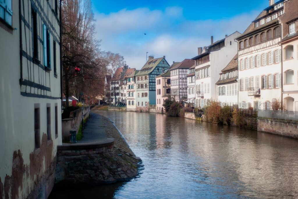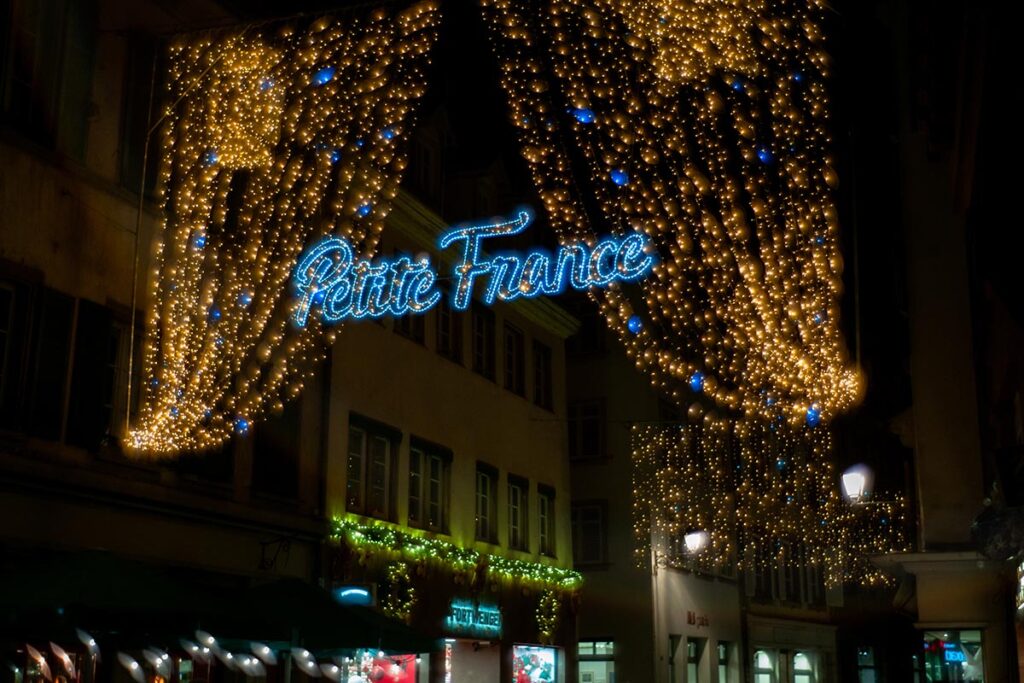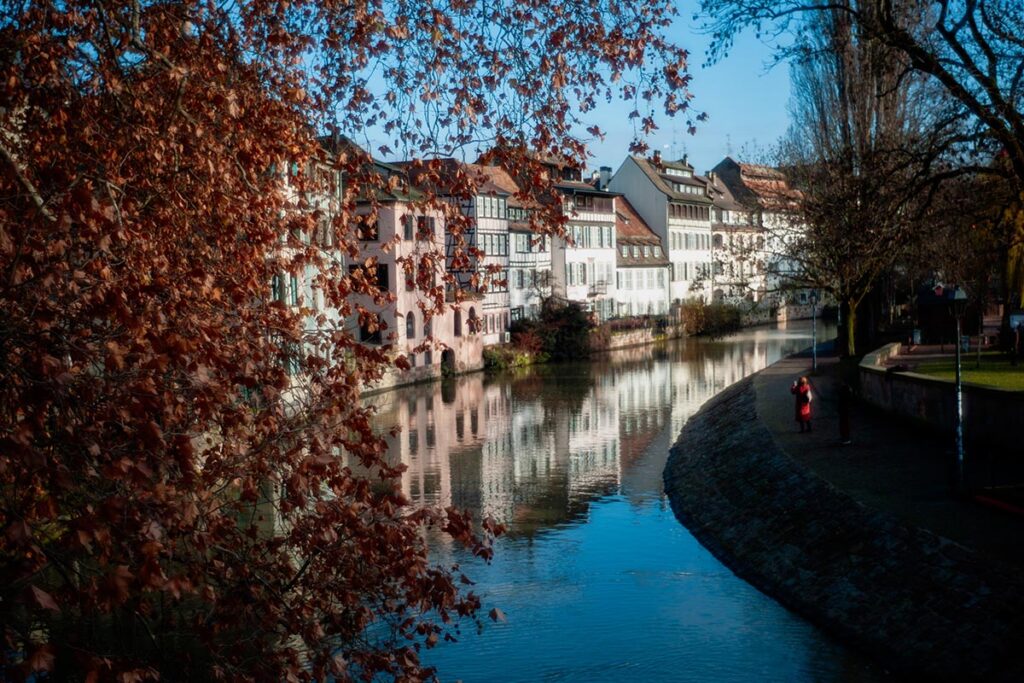 From here, you can turn right to explore Petite France, a stunning area filled with river views and beautiful historic architecture. Or you can continue straight for another 15 minutes to reach the main Christmas market areas.