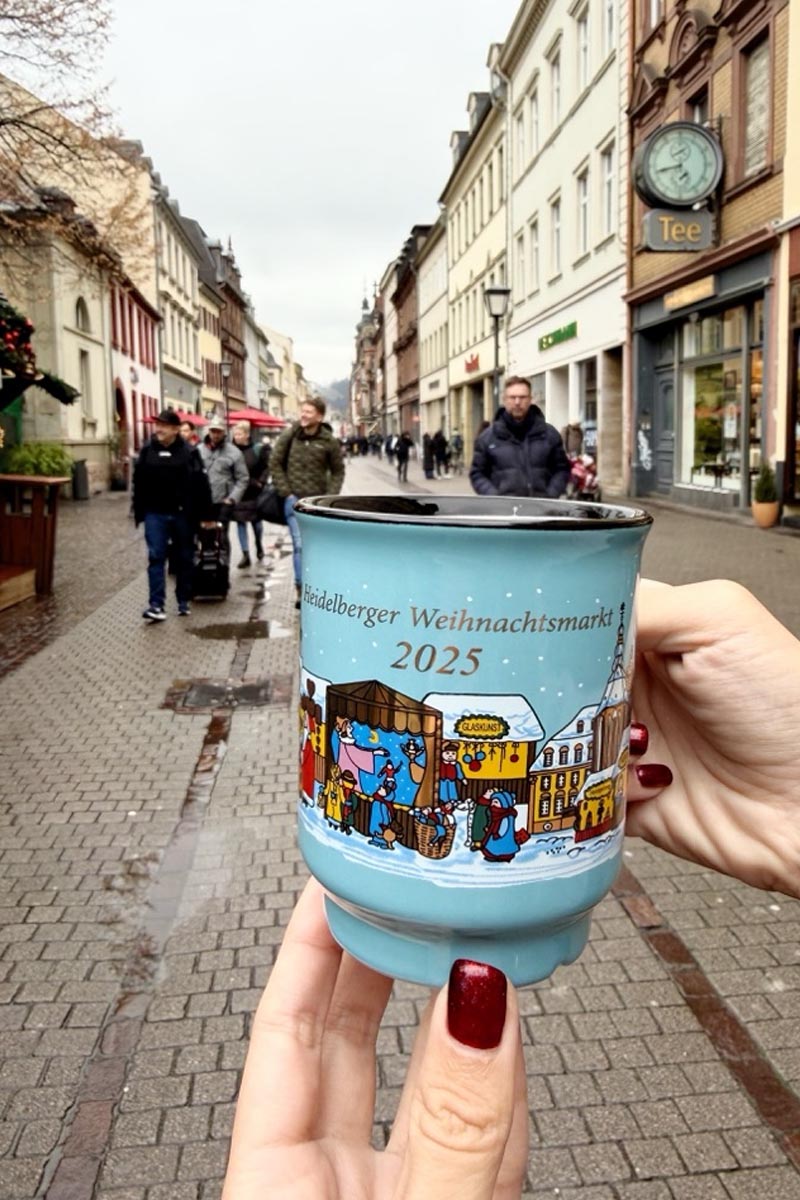 The ceramic Glühwein mug from Heidelberg is one of the most beautiful I have seen anywhere in Europe, and I highly recommend taking one home as a souvenir. Simply order a Glühwein of your choice at any stall. A deposit will be collected with your drink, and you can keep the mug by not returning it.